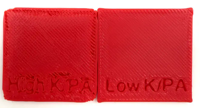 On the “High PA” above, you can see that the edges are “torn”, corners are rounded, and areas near a corner, edge, or feature are underextruded.